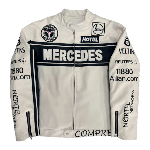 Giacca in Pelle Racing Mercedes-Benz Bianca – Stile F1