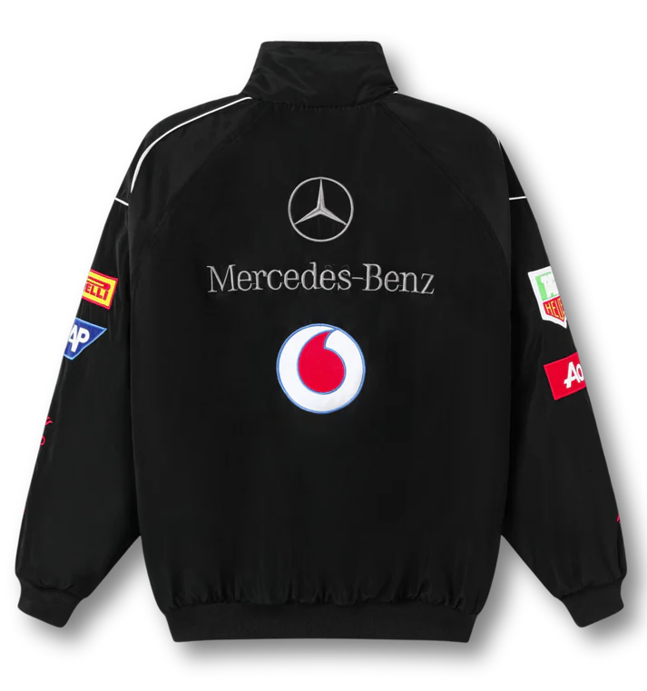 Realizzata in cotone e poliestere con imbottitura interna per un comfort ottimale. Design ispirato alle giacche vintage F1, con zip resistente e dettagli ricamati di qualitร .